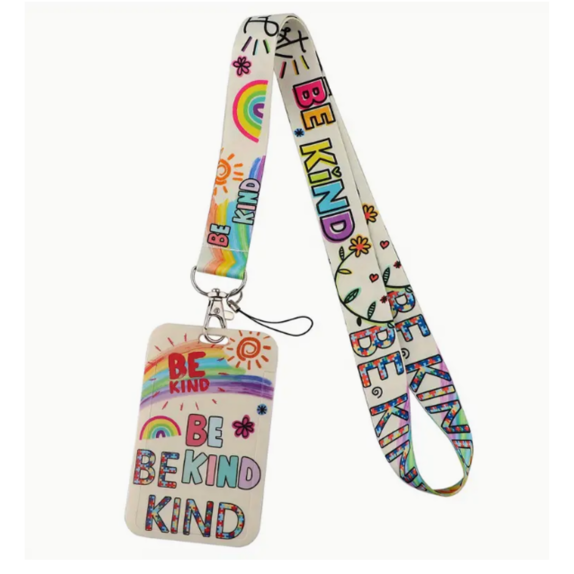 Be Kind Lanyard Set with ID Card Holder, Wrist Strap, and Keychain