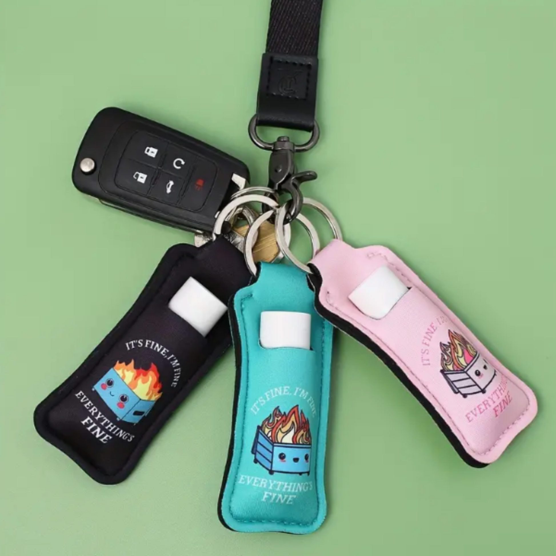 Are you one of those people who constantly needs chapstick but can never find it? This is an adorable, soft fabric chapsticker holder that you attach to your keys or bag! You will always have chapstick nearby and you'll be able to remind everyone that life is a shitshow and you're just fine as well. 3.9 X 1.8 inches