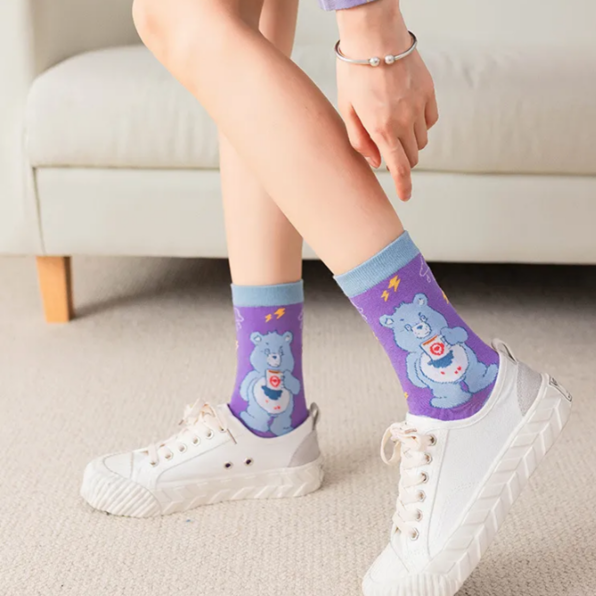 Mood AF. Crew length; One size fits most; 360 degree artwork stretches and flexes with you to maintain design detail; Fits Men's shoe size 8-12 and women’s shoe size 9-13; Knit from a thick, comfortable cotton and elastic/ spandex blend for a breathable, yet stretchy fit.
