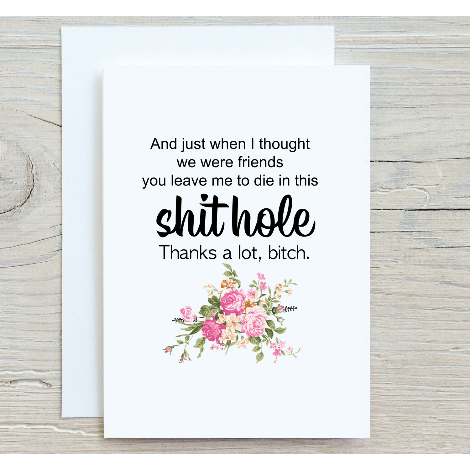 Just When I Thought We Were Friends You Leave Me To Die In This Shithole Greeting Card