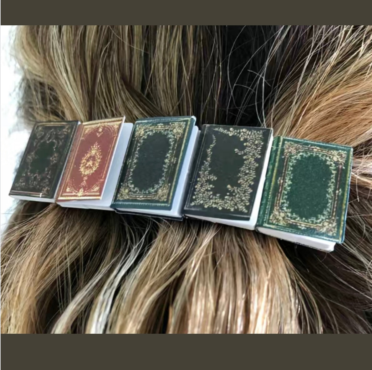 5 books that open with real blank pages on a 3inch long barrette! Adorable for book lovers.