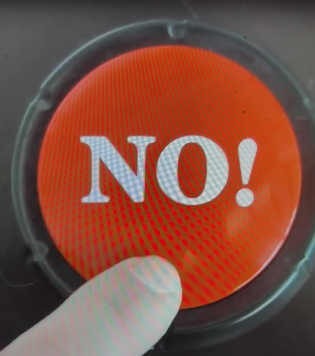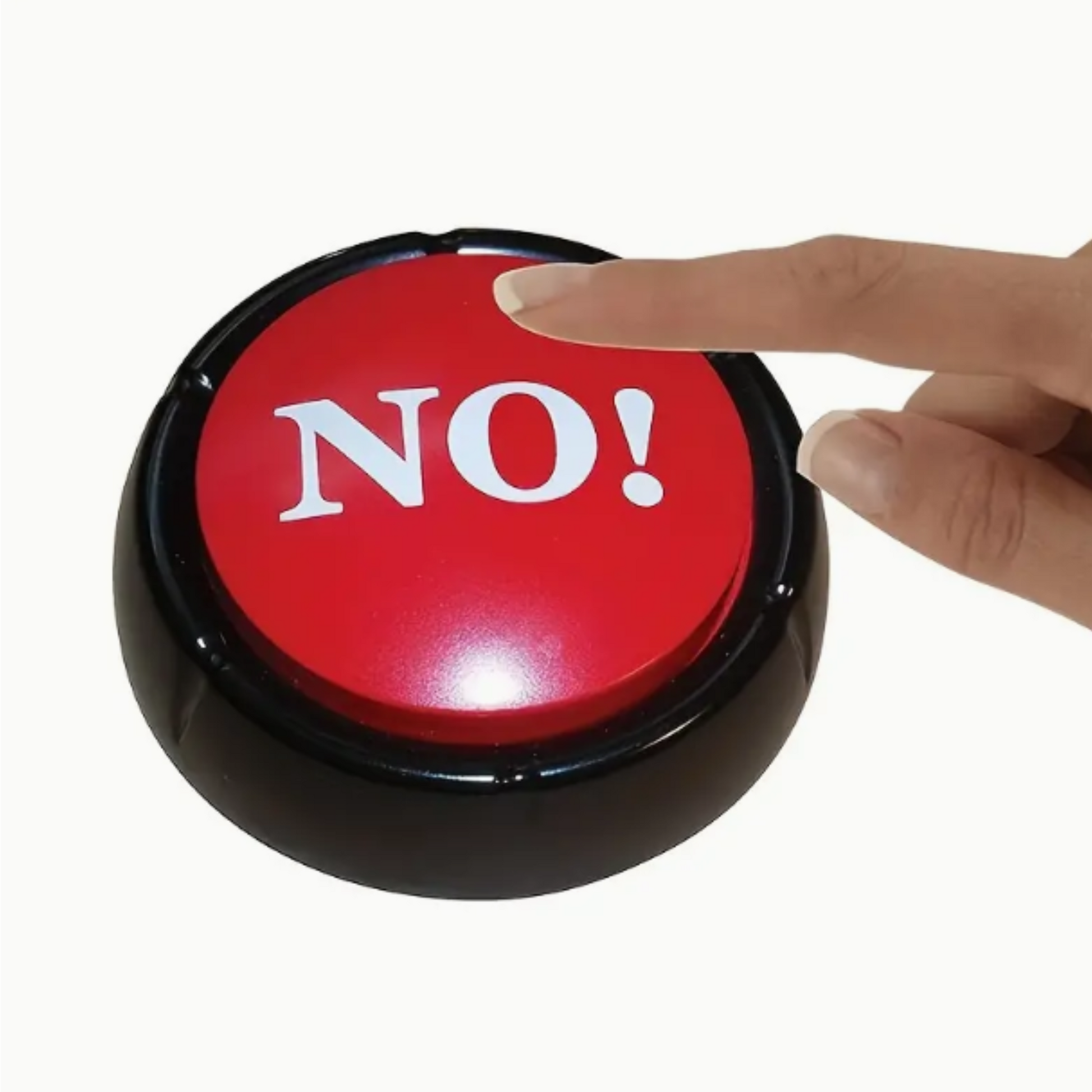 Save your voice and energy and let this button do the work for you! A man's voice says No! every time you press it but with increasing irritation. AAA batteries not included.