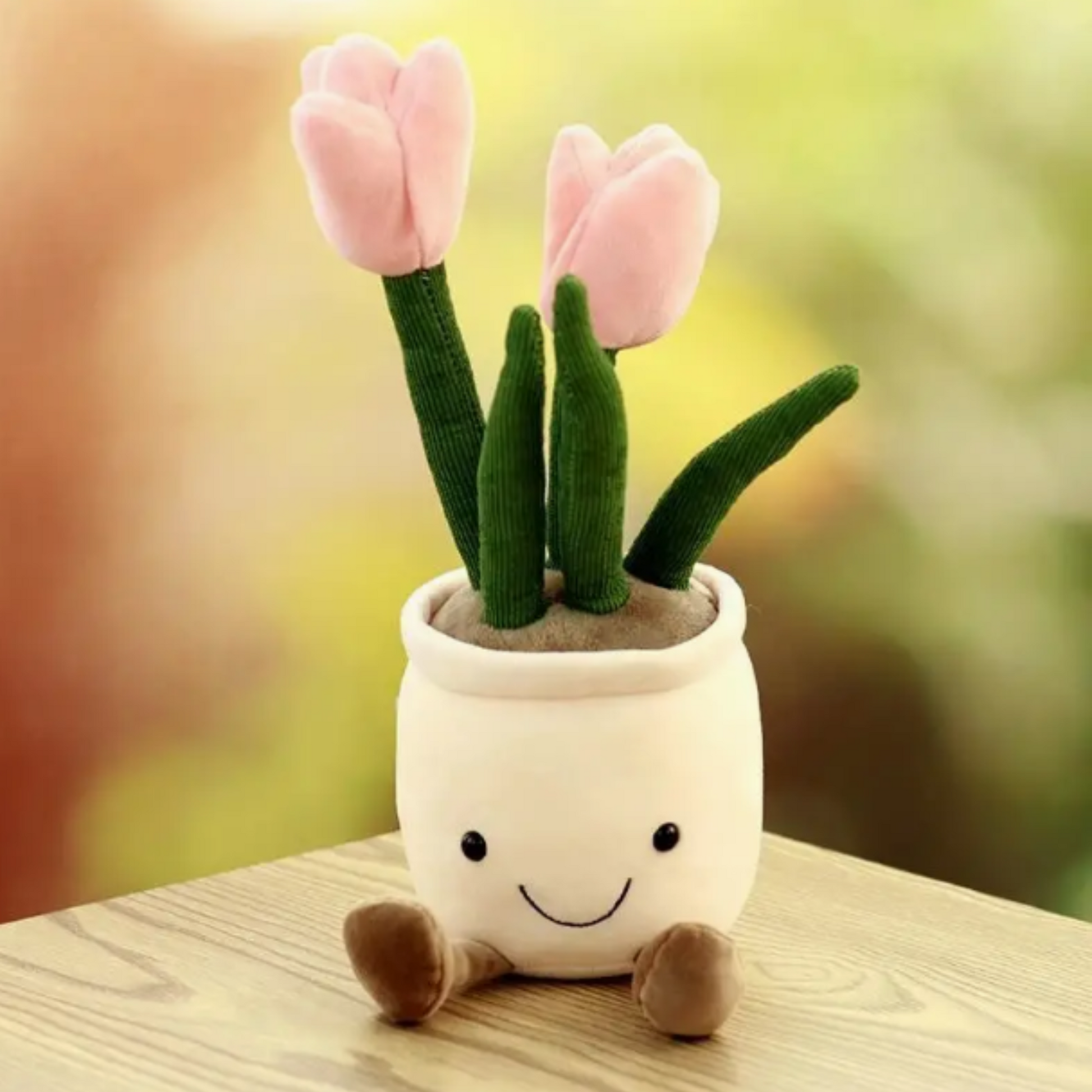 If you're like me, you can't even keep a cactus alive. That's why this adorable pot of pink tulips is perfect for us! Sturdy soft type material. 9 inches tall and sits up right. Just waiting to chill on your windowsill. ;)