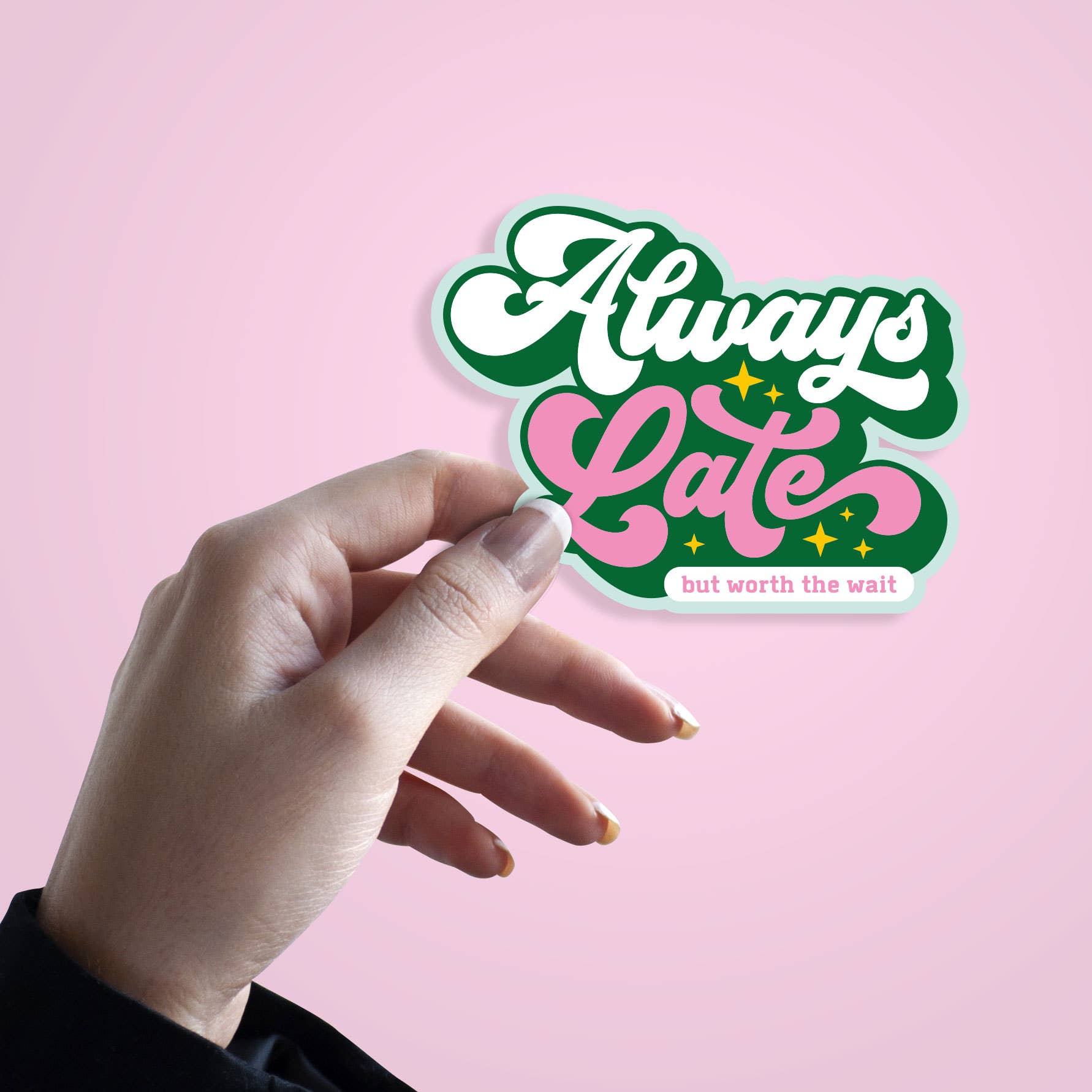 Always Late but worth the wait sticker