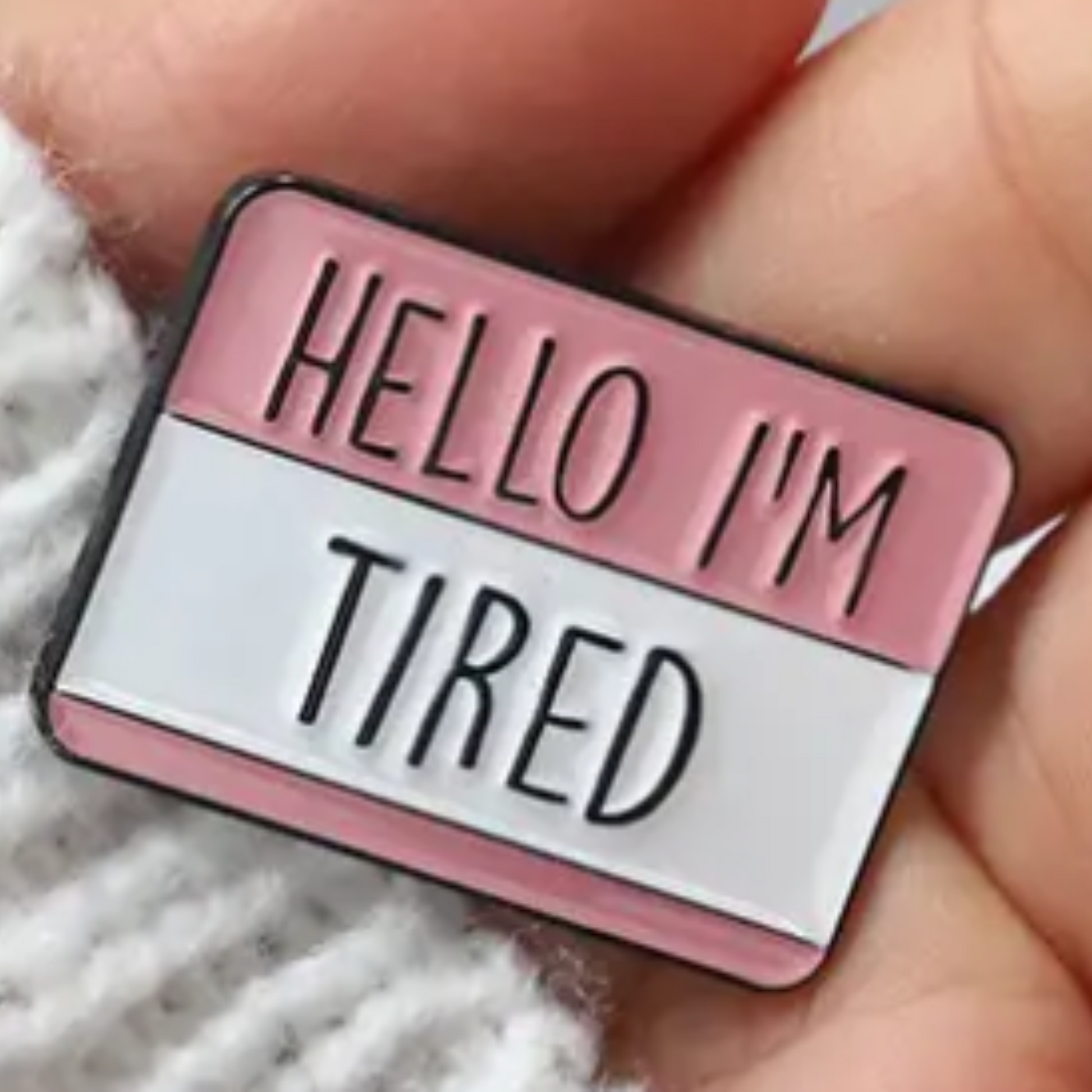 TB My "hello I"m tired" enamel pin is GREAT! Strong material and the clasp sticks tightly. Love it!