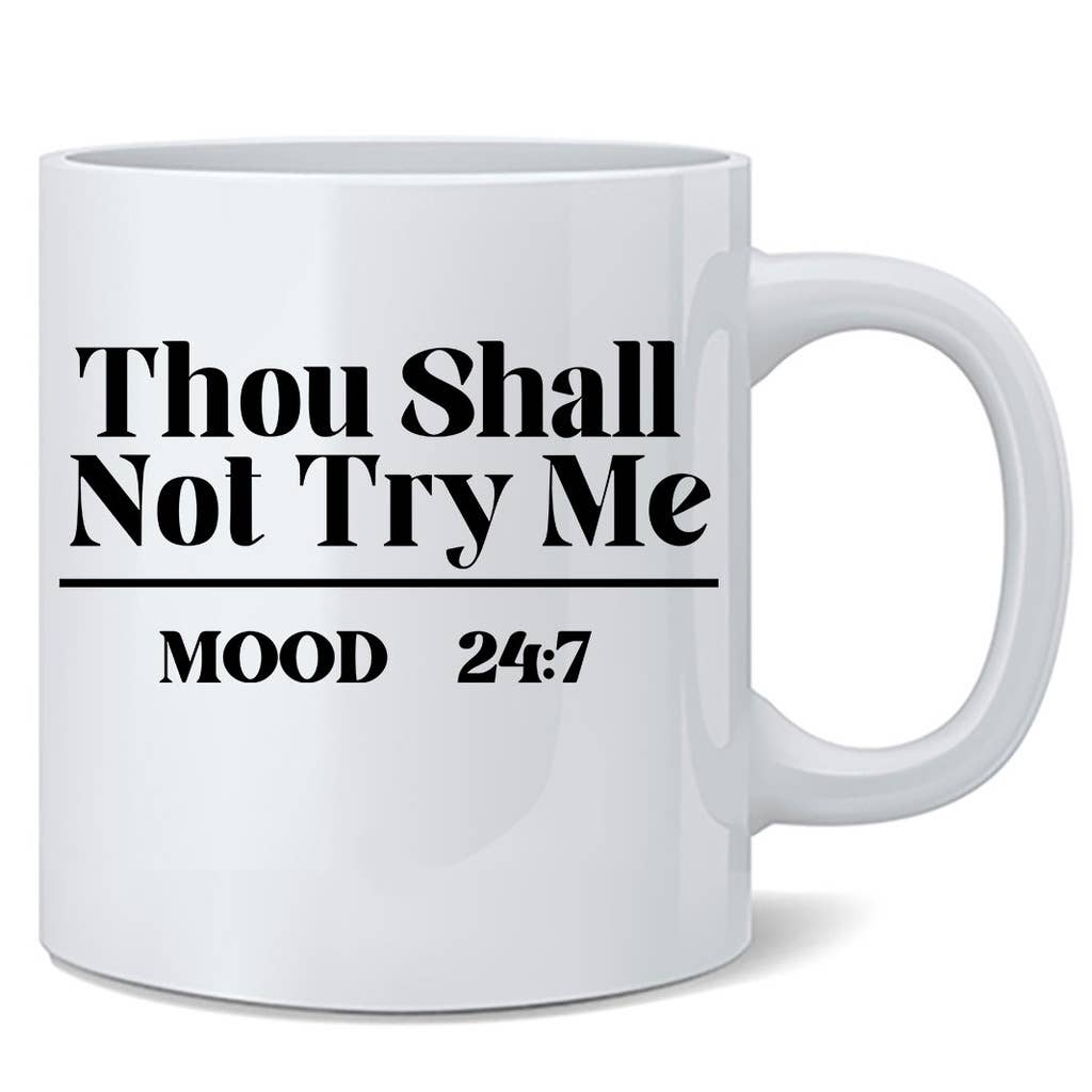Thou Shall Not Try Me Mood 24-7 Bible Verse Parody Mug 12oz