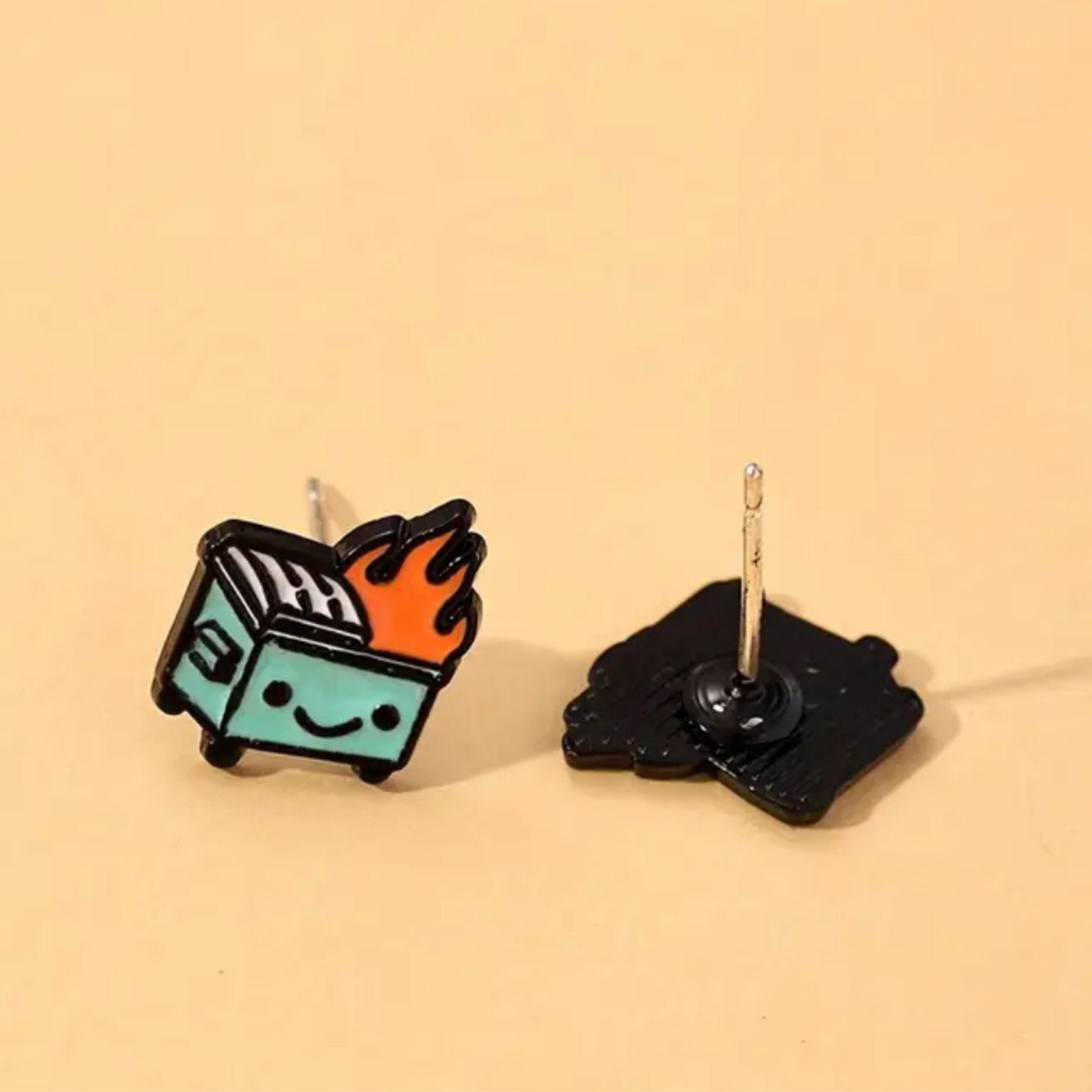 Make a big statement with this tiny dumpster fire earrings! Made with polychrome.